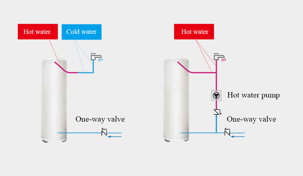 The DHW pump function is used to return water in the water pipe net to the hot water tank according to set timer. Total 12 timers for one day can be set, which allows users to set the DHW pump operation time according to using habit to guarantee using hot water without waiting for a long time.