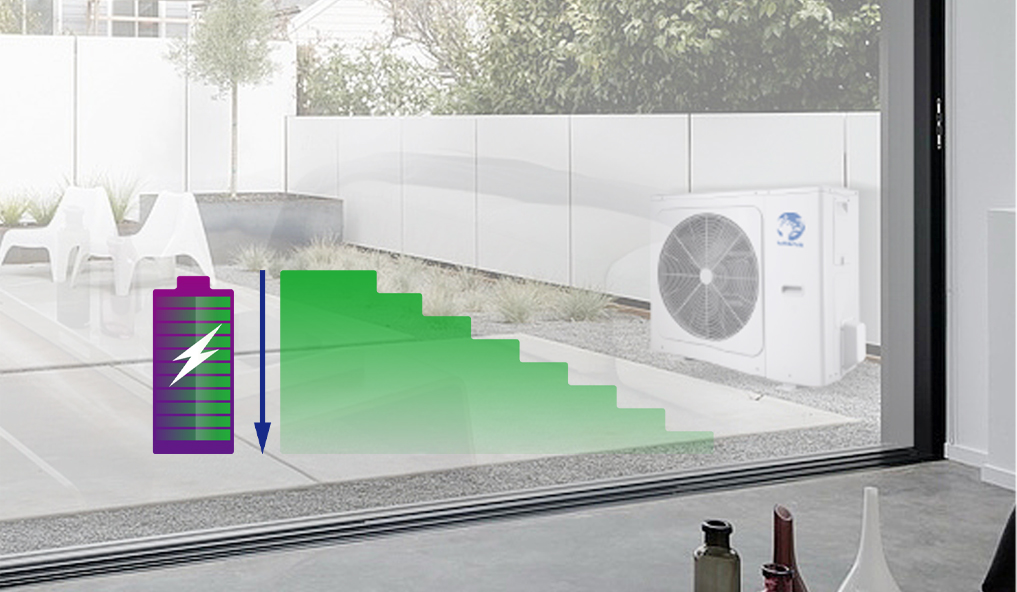 Heat pump adjusts the operation according to different electrical signals. Power consumption of the system can be automatically adjusted according to the peak and valley power to reduce the power consumption to a great extent.