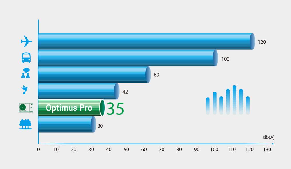 Due to the high level of optimization of technical solutions, the sound pressure level of NØRDIS Optimus Pro 4 kW units is only 35 dB (A) at a distance of 3 meters.