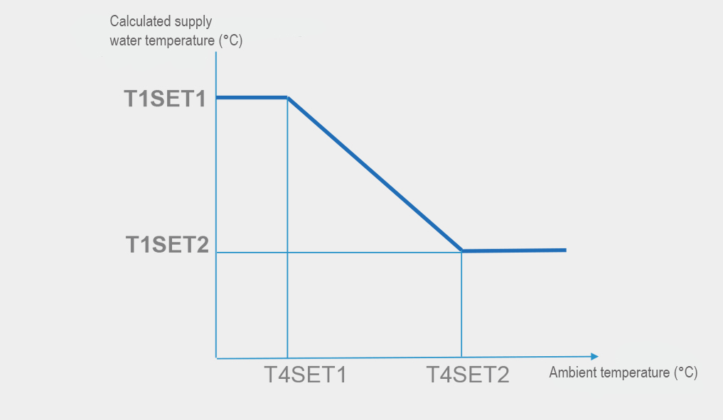 With the help of Weather temperature curve function, water temperature will automatically change as outside air temperature changes. When outdoor air temperature increases/decreases, the heating load will decrease/increase and water temperature will decrease/increase automatically. When outdoor air temperature decreases/increases, the cooling load will decrease/increase and water temperature will increase/decrease automatically. Totally 32 fixed Weather temperature curve and one custom curve is available, which meets the diversified requirements of temperature.
