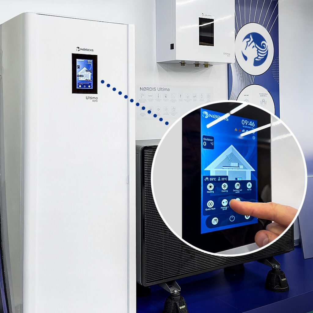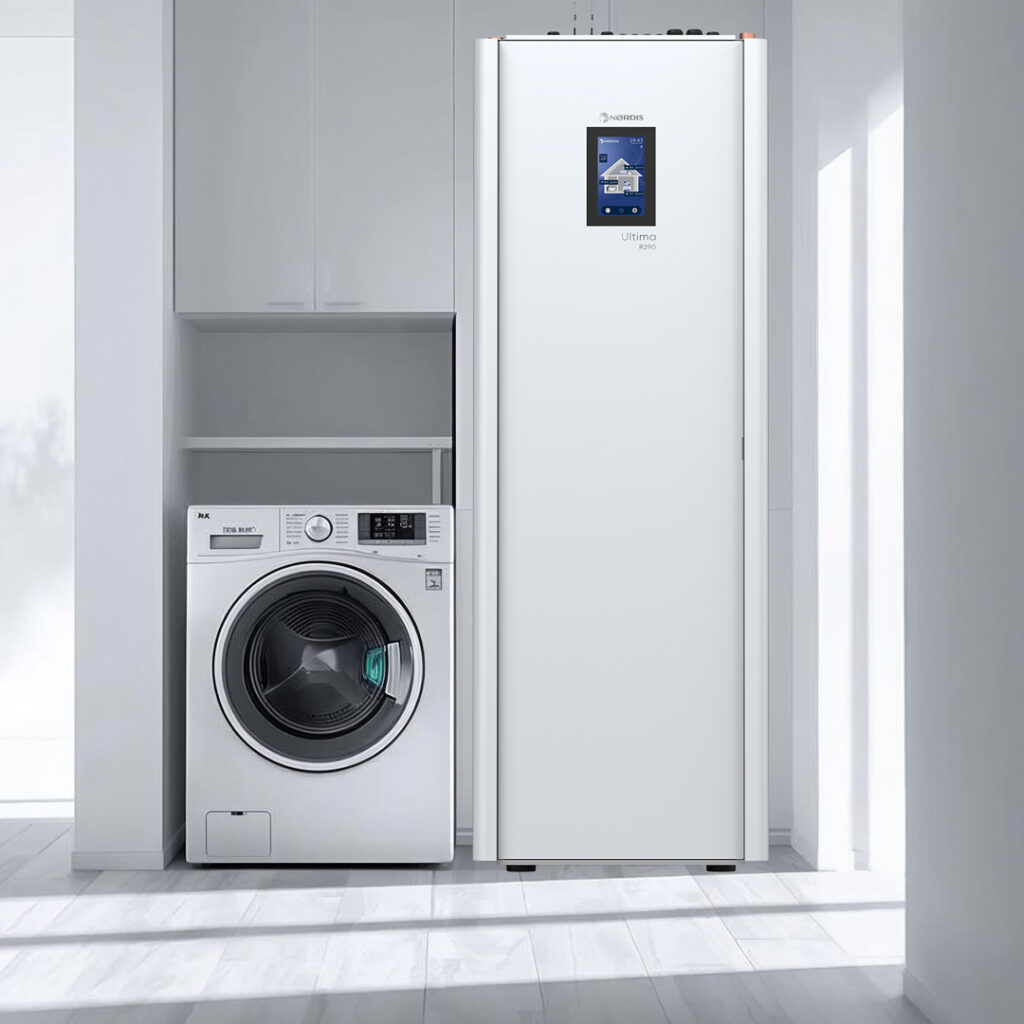 The NØRDIS Ultima Mono indoor unit with an integrated hot water tank is a versatile solution that combines heating, cooling, and domestic hot water functions in one compact unit.